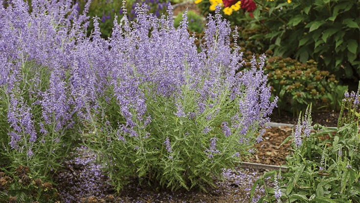 From the remaining short list, ‘Denim ‘n Lace’ Perovskia emerged as the winner. The genus of Perovksia offers many benefits, such as a food source for pollinators, heat and drought tolerance, and late season color. ‘Denim ‘n Lace’ is a marked improvement from traditional varieties with a resilient habit that resists lodging and does not sprawl in the landscape. It maintains its tidy, compact shape even as it ages through the years. ‘Denim ‘n Lace’ shows color before most other varieties with early blooms and keeps that color through fall with its colorful calyxes.