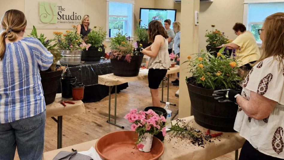 During the COVID-19 pandemic, Seasons Garden Center in Washington Crossing, Pennsylvania (on the New Jersey border, just outside of Trenton), turned a back garage into The Studio at Seasons Garden Center, an educational classroom that offers 35 to 40 classes on gardening, floral design, fine arts and healthy living.