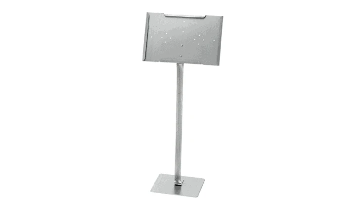 COL-MET table top sign holders come in a variety of standard sizes. Sizes range from 5 x 4 in. to 9 x 11.5 in. The standard table top sign holder is made from sturdy galvanized steel and is a self-standing piece that requires no assembly. The sign can be used for promoting products indoors or outdoors and gives a clean look for your garden center or nursery. You can customize the table top sign holder to meet business needs. For example, powder coating and finish type are available. Call COL-MET today at 800-829-8225 for more information.