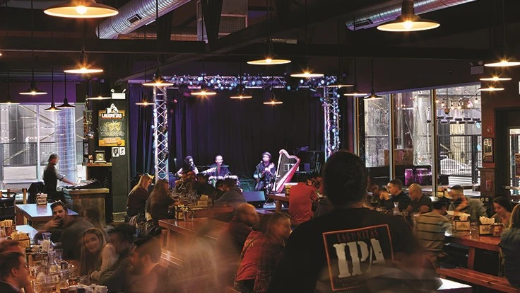 The fact that craft beer companies allow customers to tour their brewing operations is nothing new. But when the Chicago facility and taproom opened, Lagunitas decided, instead of having people walk around the tanks on the ground level, they would install catwalks so that visitors could get a bird’s eye view of the bottling and other brewery processes, offering visitors a different perspective, Hamilton says.