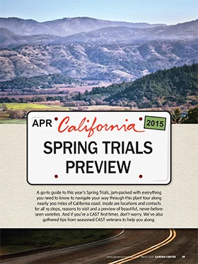 A go-to guide to this year’s Spring Trials, jam-packed with everything you need to know to navigate your way through this plant tour along nearly 300 miles of California coast. Inside are locations and contacts for all 19 stops, reasons to visit and a preview of beautiful, never-before-seen varieties. And if you’re a CAST first-timer, don’t worry. We’ve also gathered tips from seasoned CAST veterans to help you along.