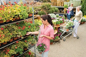 Depending on the traffic, Graf Growers designates two to six people to refresh displays of plants as customers transfer them to their carts.