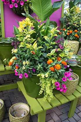 A great seat doesn’t have to be the most expensive one in the house. While it is important to display your product on benches and tables that exhibit similar quality to the plants you are offering, there are many options out there, especially if you are willing to put a little time and elbow grease into it. Using display tables that are neutral or gray in color allow brightly colored foliage and flowers to stand out. One such option is to build simple cedar benches or shelves. Not only are they inexpensive, but they convey a natural look that fits right in with any garden center.
