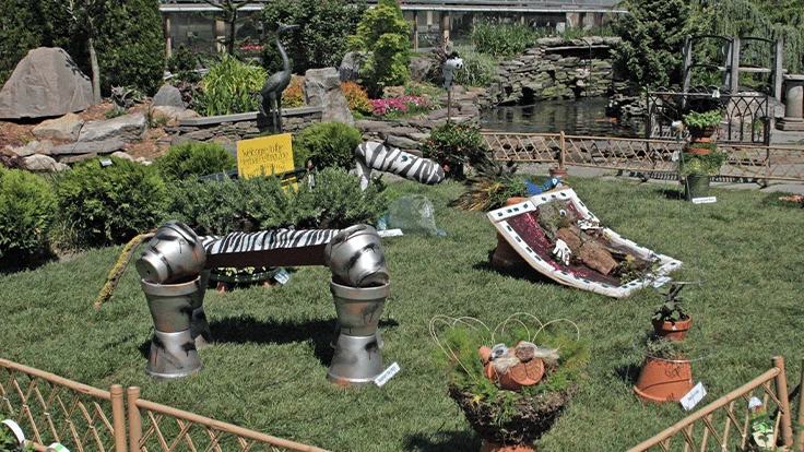 Displays that encourage customers to touch the plants are great for families since kids get quite excited about how things feel. You might even organize a special area made for children and adults where the theme is “Please Touch the Plants!” Some years ago, at my garden center, we created an Herbal Petting Zoo. Any employee who wanted to contribute made an animal that included herbs. These were labeled with fanciful names and displayed in a temporary enclosed area on strips of sod. Animals were created out of flowerpots and assorted garden center cast-offs, and the display included Sage the Ageless Turtle, Pesto the Basil Beast and Lavender the Perfumed Peacock.