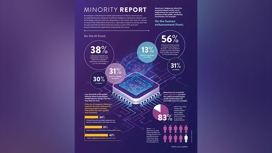 According to a Pew Research Center poll conducted in March, Americans are considering the latest advances in artificial intelligence and human enhancement technologies with pros and cons, depending on the context. But most U.S. citizens are wary of the implications of new tech, especially its impact on society. Dive into the data and find out where Americans stand on some of the six AI and human enhancement applications proposed by the survey.