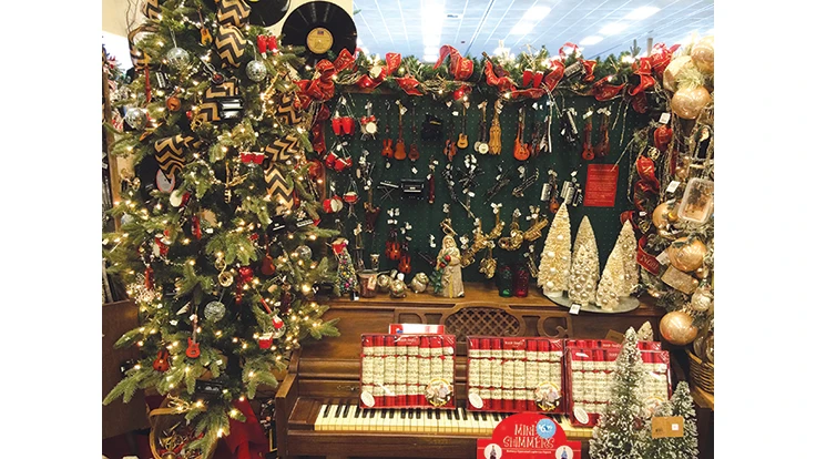Sky Nursery displays its ornaments depicting guitars, disco balls, violins, drum sets and other music-themed items on an old piano during the holidays. The set-up caught our eye during our store visit on Nov. 21. While many garden centers decorate multiple large trees in themes and place them throughout the store, the Shoreline, Washington-based business keeps its Christmas section creative but compact for a less overwhelming shopping experience.