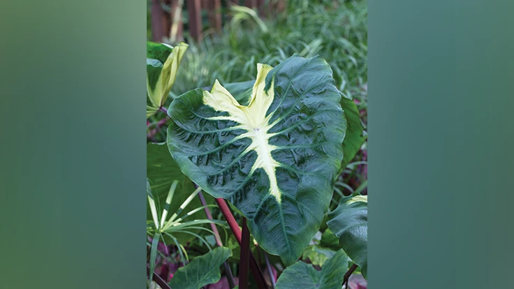 Take your Elephant Ear assortment and kick it up a notch. This cultivar has rich, glossy, heart-shaped leaves with a large, broad, creamy white to yellow center vein. Great for containers or the garden. Deer-resistant foliage lasts all summer long until the first hard frost. Grows up to 48 inches tall and does best in partial sun. Hardy in zones 7 to 10.