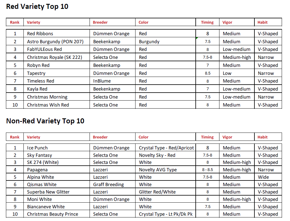 Results from Plantpeddler 2025 Poinsettia Variety Day