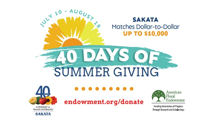 ALEXANDRIA, VA – June 22, 2017 – Sakata Seed America has teamed up with the American Floral Endowment (AFE) for a "40 Days of Summer Giving" campaign in celebration of Sakata's 40th anniversary in North America.