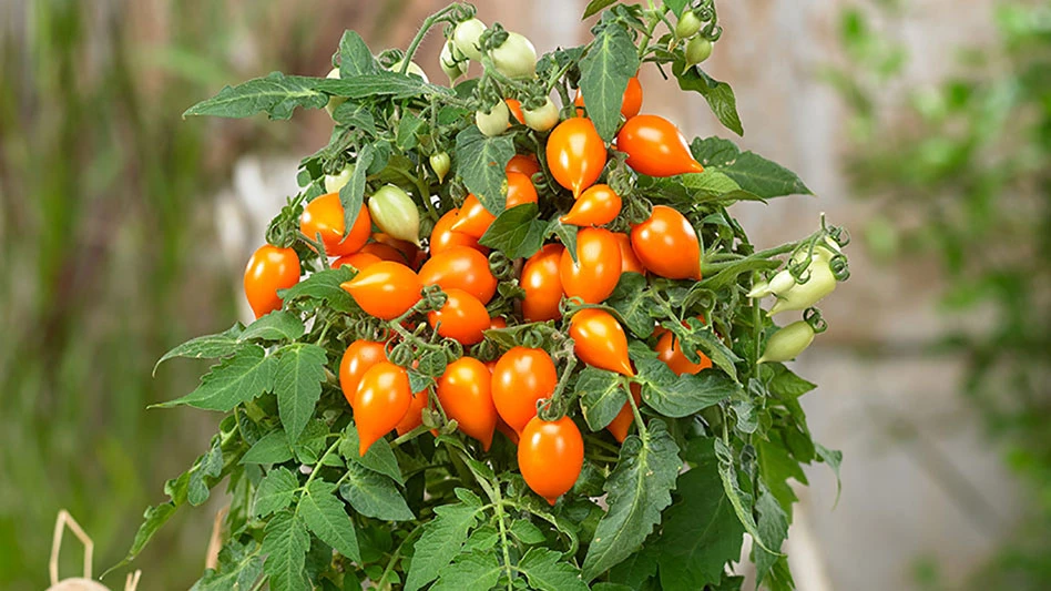 Sunny Drops Baby Orange F1 tomato has a tear-drop fruit shape and a vibrant orange color. The plant height is only 12 inches tall yet loaded with fruit! Fruits are a pale green color at immaturity and set on the outside of the plant making it highly visible and easy to harvest. Pruning and the use of growth retardants are discouraged. This variety does well in low light conditions and will work great for small-space gardening, indoor use or vertical farming.