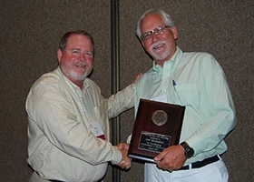 Greg Gabrels presenting the AAS Medallion of Honor award to Joel Goldsmith.The first award given that evening was the prestigious AAS Medallion of Honor, an award designed to recognize someone with a lifelong dedication to advancement in the field of horticulture.