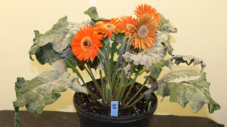 Results showed that genes from other plants can be transferred into gerbera crops to increase their resistance to powdery mildew. Regenerated plants had few mildew symptoms and better mildew resistance.