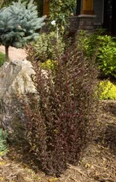 Little Devil grows only to 4-feet, making it an ideal background for beds or the perfect shrub border. It features beautiful, deep burgundy foliage throughout the season and small white-pink clusters of flowers in June.