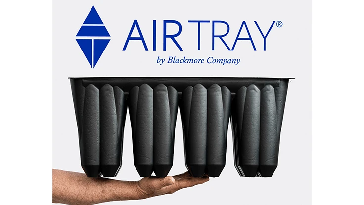 Blackmore Company, a leader in plant production tray engineering and manufacturing, is announcing the official launch of their Air Tray line of patented root air pruning trays. The Air Tray, per the release, “is a leap forward in tray engineering, unique from all other tray designs on the market, earning it a new, distinctive brand identity.” The cornerstone of this breakthrough technology is a patented tray design that maximizes air flow around the root zone, optimizing root air pruning, and closely simulating natural root development in container production.