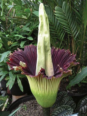 The incredibly stinky corpse flower, amorphophallus titanum, is blooming at the Denver Botanic Gardens, 1007 York Street, Denver.