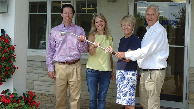 Dramm Corporation has announced the passing of the ‘Rain Wand’ to the next generation. Receiving the Rain Wand from Kurt and Marlene Dramm (pictured right) are Hans Dramm and Heidi Dramm Becker (pictured left).