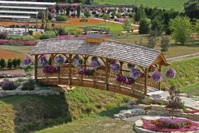 Four Star’s extensive display gardens include more than 20 landscape beds, a large variety of containers and baskets hanging from an extended pergola, a covered bridge, water features, stone patio gathering areas and walkways, and a new perennial bed to showcase Proven Winners Perennials.