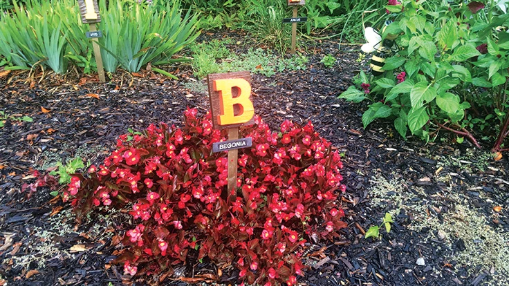 In his first year on the job at Klehm Arboretum, John Moors, now the director of horticulture, tended to the alphabet garden, which has been an attraction at the public garden for at least 15 years. Like any “good gardener,” he says, Moors grouped the large plants in the back, small ones in front so all could be seen. His kids didn’t approve, however. “My kids straightened me out and said [the plants] should be in [alphabetical] order, left to right,” Moors says. And ever since, that’s how they’ve been organized at the Rockford, Ill., arboretum, even though at times it can be a challenge. Wooden letters created by one of Moors’ friends more than a decade ago are staked near the corresponding plants, which go by both common and scientific names. For example, B is for begonia, M is for marigold and X is for Xanthorhiza. “X was a difficult one,” Moors says. As was U, which was once a unicorn plant and now is an umbrella plant, and K, which is now Kniphofia. Another challenge is taming the plants to stay within their 30- to 36-inch plot. One season, a phlox grew to three feet tall and blocked the end of the alphabet. Challenges aside, the work is worth it. The garden impressed IGC Show attendees in Chicago, some who said they’d like to try the idea at their garden center. “We try to go with a lot of perennials, or annuals we know we are going to buy every year,” Moors says. “It’s worked out well, and it’s been a lot of fun. Kids as well as adults learn from it.”