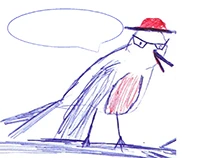 To help us draw attention to an otherwise forgotten about section of our store, we decided to adopt a little mascot to help us out a bit. Instead of relying on a boring clip-art derived image we decided to go the unique route. So, a with a little bit of imagination and a pot of coffee, our "Bird Nerd" was created. Using a simple piece of scrap paper, a blue pen, a red pen and a scanner, we were able to place this image around the store reminding people of our class.