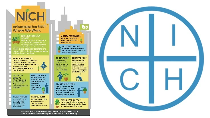 #PlantsDoThat Inside Where We Work is part of a series of four infographics designed by Jennifer Gray, AmericanHort, and Horticultural Research Institute. They are free of charge and can be downloaded from NICH’s website.