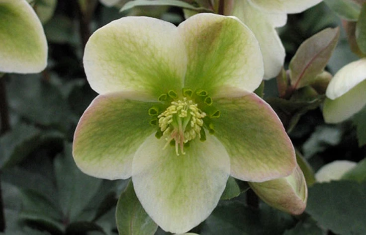 Ivory Prince has prolific ivory flowers flushed with pink and streaked with green and rose hues that deepen with time. The outward-facing, long-lasting blooms appear in January or February, depending on your location, and persist through April. The unusual silvery mottled evergreen foliage makes Ivory Prince attractive through all seasons and is a highly desirable plant in the border or in a container. With a tidy, mounding habit, Ivory Prince grows to 18 inches high and 20 inches wide. It’s hardy to USDA Hardiness Zone 4.
