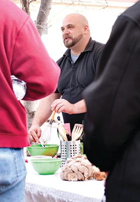 Photo: Jonathan Bardzik hosts a cooking demonstration in Washington D.C.'s Eastern Market. Photo by Metro Weekly