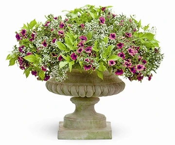 This combination features Snow Princess, Sweet Caroline Light Green and Supertunia Pretty Much Picasso. Popular on their own, these plants combine to make a stunning combination, which Proven Winners named “Picasso’s Fantasy”.
