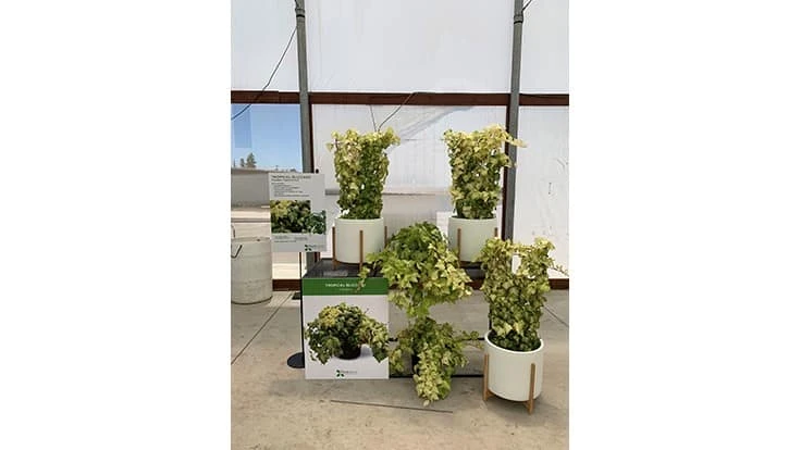 Targeting indoor gardeners’ love of foliage, this variegated Algerian ivy provides a tropical look. With colorful, bold pink stems and glossy foliage reaching 3 to 4 inches wide and 5 to 6 inches long, it’s a tidy climber. “This one, I think, is going to be one of our most popular plants in the next five years,” says Robert Bett, CEO of PlantHaven. New for 2022-2023, keep an eye out for it on the market.