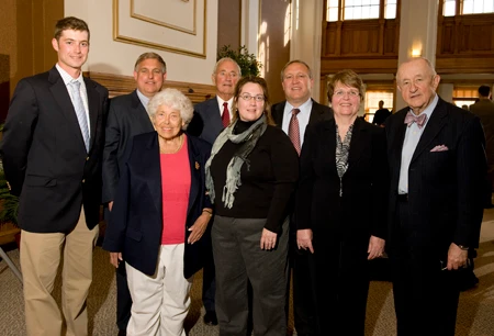 Pictured: 3 Generations of the Huntington Family. Front row From Left to Right: Eleanor Huntington, Sharon Huntington and Barbara Draper, Center Director. Back row from Left to right Ben Huntington, Jeff Huntington, Jonathan Huntington