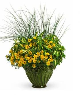 Proven Winners selected ColorBlaze Alligator Tears, ColorBlaze Keystone Kopper and ColorBlaze Marooned coleus from the University of Florida breeding program. Both Keystone Kopper and Marooned are new for 2013. All three coleus varieties can be grown in full sun or full shade, giving the gardener multiple décor opportunities. Coleus can be used as a filler or thriller in a combination, but it can suffer under cold night temperatures. In the photo, Alligator Tears is used as a filler with Graceful Grasses Blue Mohawk Juncus as a thriller, and Goldilock Rocks Bidens as the spiller. It’s important to note that the plant should be protected if temperatures dip into the 40’s, as this can cause leaf damage and stunt the growth of the plant.