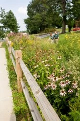 Rain gardens are plantings in depressions that catch stormwater runoff from sidewalks, parking lots, roads and roofs. Rain gardens come in various shapes and sizes, from large basins carved by front-end loaders to small artificial streambed-like formations complete with pebbles. Rain gardens not only slow water down to give it time to soak into the ground and be used by plants, but also filter out sediment and chemical pollutants.