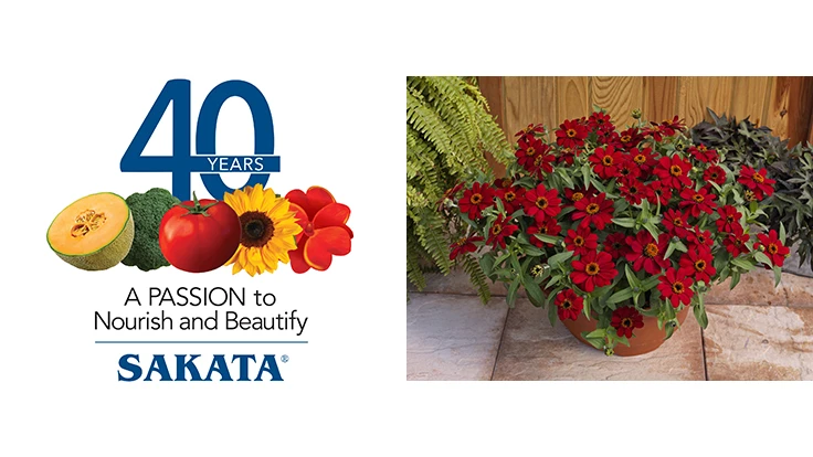 Sakata’s first celebration of the year took place at California Spring Trials, where visitors were greeted with the 40th Anniversary theme as soon as they stepped in the door, and found an impressive line-up on new introductions including Profusion Red zinnia, which already holds an AAS Winner and Fleuroselect Gold Medal award for the year.