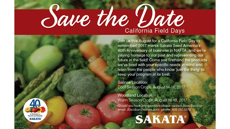 Join Sakata Seed America this August for a California Field Day to remember. 2017 marks Sakata's 40th Anniversary of business in NAFTA, and we're paying homage to our past and representing our future in the field! Come see firsthand the products we've bred with your specific needs in mind and learn from the people who know "just the thing" to keep your program at its best.