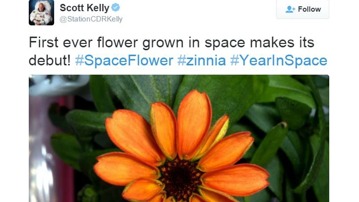 Morgan Hill, Calif., March 2016 – In January, Scott Kelly, Expedition Commander on the International Space Station, tweeted a photo of a blooming zinnia at the International Space Station 250 miles above earth. The blooming zinnia was a big development for the future of cultivating flowers and vegetables in space ventures to come. The #SpaceFlower, as Kelly hashtagged in his twitter post, was none other than Sakata Seed’s Profusion Orange zinnia. Profusion Orange is an All-America Selections Gold Medal Winner and is known for its uniformity and heat, drought and disease resistance.