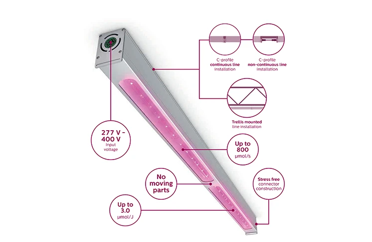Signify announced the introduction of the new Philips GreenPower LED toplighting high output with a light efficacy up to 3.0 µmol/J and an output of 800 µmol/s. The new module will help greenhouse growers improve the growth of vegetables, fruits, flowers and other crops that require a lot of light. The new toplighting is available as of September 2018.
