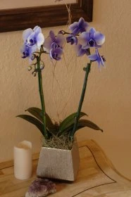 Like Blue Mystique and Indigo Mystique before it, exclusive technology infuses Lila Mystique’s flowers from the inside, in this case transforming them to a shade of lilac. Buds on the current stem will open to softly fading light purple flowers because they were closed at the time of treatment. As the healthy orchid grows, a new stem will yield white flowers.