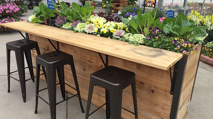 Floricultura was packed with visitors on the morning of Day 3 of the California Spring Trials. Plug Connection showcased crowd favorite Ketchup ‘n’ Fries potato/tomato plant and merchandising ideas to put a spotlight on locally grown edibles. One display featured a 2015 introduction, Pixie Grape, complete with branded wine bottles with a Pixie label and wine glasses (see "Tiny and Tasty"). Westhoff added another “weird and whacky” plant to its Crazytunia line, Frisky Purple, which features a grape-colored petal with a lime green, star-patterned bloom in the center (see “A ‘wacky’ petunia.”). The company also showcased its HOT lobelia line, which includes indigo hues like the striking Waterblue.