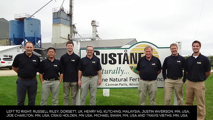 Cannon falls, Minn. — Oct., 2017 — Suståne Natural Fertilizer, Inc., a manufacturer-exporter of organic and natural base slow-release nitrogen fertilizers, recently held its annual global sales meeting. The conference brought together executive management, research, and development, customer support, marketing as well as the sales team from around the world to the corporate headquarters in Cannon Falls, Minnesota. Team members took part in comprehensive facility tours, a review of recent manufacturing process updates, detailed product training, previewed new products and conducted strategy sessions.