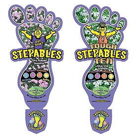 Under A Foot Plant Company continues to advance its new marketing strategy for spring 2011 by putting powerful tools to work to further promote the STEPABLES brand. An update was done on the company's uniquely recognizable foot shape tag, and new, colorful signs and bench tape have been added to strengthen the visual impact on consumers at the retail level for spring 2011.