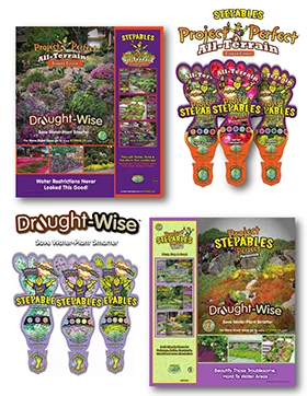 Project Perfect - All Terrain Ground Covers was developed to make it easy and understandable for homeowners to buy ground covers and help them keep to an environmentally friendly and drought conscientious plan for their landscape. All Terrain Ground Covers is a new, all encompassing ground cover line that is customizable to each grower’s list of plant offerings. A grower may create a whole new line of groundcovers under the brand umbrella of STEPABLES and market Project Perfect - All Terrain Ground Covers to their various retail markets. There are hundreds of groundcovers that could be sold under this umbrella; from sedums and sempervivums, to ferns and heucheras, along with pachysandra and hypericum. In addition, Under A Foot Plant Company has created a Drought-Wise campaign that strategically targets consumers with drought conditions and water restrictions. Also new is the Drought-Wise symbol on the tag front of drought tolerant plants to help consumers easily identify which plants will work for their water sensitive, drought restrictive situation.