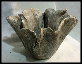 The Amour pot is one of many designs by John Lamos, who uses eco-friendly materials in his nature-inspired designs. The “cementitious” material (cement blended with various recycled materials) is lighter than concrete with tensile strength that flexes, making it durable and practical for outdoor use with many design applications. Each piece is a unique organic texture and shape, and is individually hand-crafted. The Amour comes in three sizes ranging from small (7 inches by 9 inches) to large (13 inches by 20 inches.)