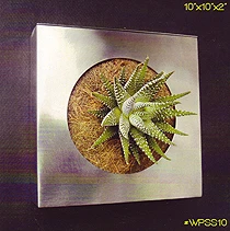 These uniquely artistic vertical wall planters are from Art Matters. Hung like a picture on a wall, these beautiful planters provide an elegant frame for any small plant. Plantings are contrasted artfully with the natural colors and textures of the aged copper or stainless steel finishes.