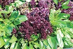 EuroAmerican’s Balsamic Blooms is completely edible, and it grows leaves and blooms simultaneously. The deep purple blooms last for weeks and are prone to attracting pollinators. Flavors range from mint (blooms) to sweet basil (leaves).