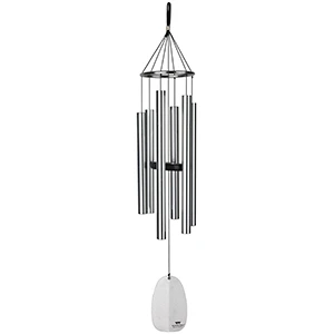 The Bells of Paradise chimes are made of silver anodized aluminum tubes with a metal ring accent. The chimes come in a gift box.