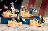 Blossom Bucket has introduced "God Bless Our Troops" blocks. These popular new blocks by designer Suzi Skoglund begin shipping in April, but have already earned a spot among the company's "Bucket's Most Wanted" products. Blocks are available for Air Force, Army, Marines, and Navy, but no collection is complete without all four. Each handcrafted resin block measures approximately 2.75 inches H x 4 inches L.