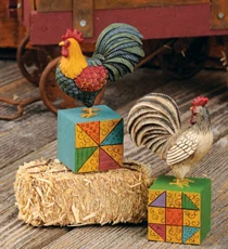 In March, Blossom Bucket will begin marketing this set of roosters on quilt blocks. They are hand-crafted in resin and feature colorful detailed artwork that will complement farm- and rustic-themed indoor settings. They are designed by Deb Strain.