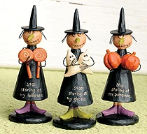 Blossom Bucket's "Stop Staring" Witches from artist Barbara Lloyd are a scream! People laugh out loud when they read the message inscribed on each piece – “Stop staring at my pumpkins/lollipops/ghosts.” With a suggested retail price of just $5.99, these witches are sure to fly off of retailers' shelves in the fall.