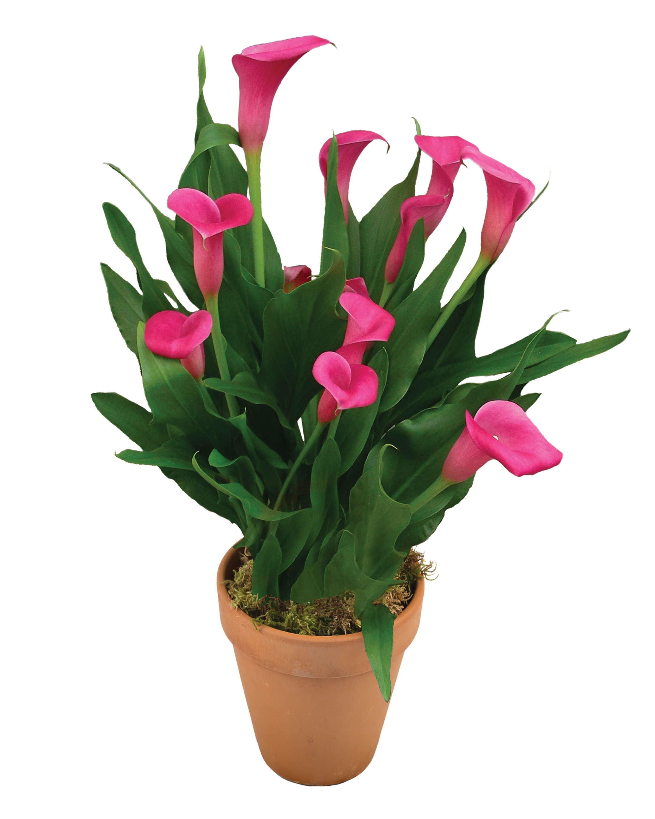 Callafornia Callas 'Lip Gloss' has lustrous, hot pink blooms with medium green foliage. Well-suited for small- to large-potted plant programs, 'Lip Gloss' has a full habit and produces high flower counts.