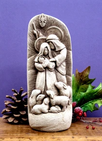 Carruth Studio has introduced the Starlight Nativity sculpted by Ohio artist, George Carruth. It measures 2 ½ inches x 6 ½ inches x 2 ¼ inches, and weighs 2 pounds. It can be displayed as a free-standing sculpture, or it can be placed on a wall using a hook that is imbedded on the back. It is made in the U.S.A. and comes gift-boxed.