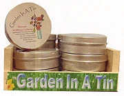 Cedar Creek Products markets Garden in a Tin, a collection of plant seeds that will produce colorful, hardy flowers. Available kits include the Annual Sunflower Collection (48- and 60-inch mix), Perennial Wildflowers (15 varieties), and the Perennial Poppy Collection.